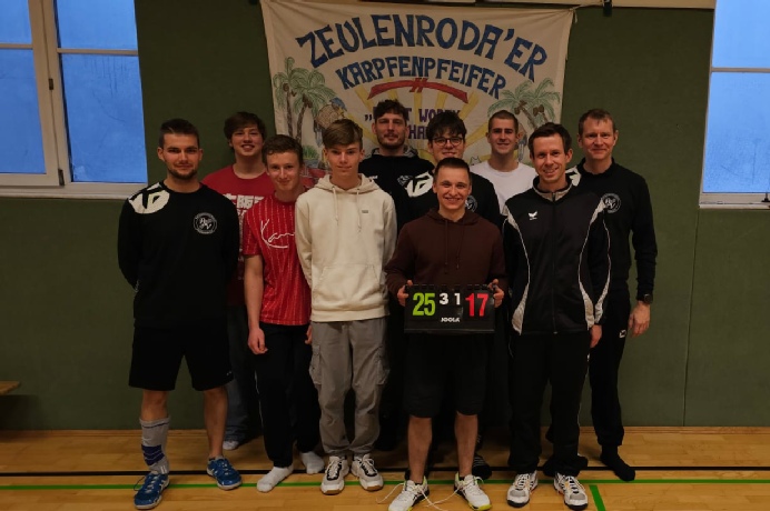 …kommen die Karpfenpfeifer in der laufenden Bezirksligasaison. Erstmals mit gewohnter Stammformation sichern sich die Zeulenrodaer die nächsten Punkte in der Saison. Mit dem FSV Ziegenrück und SV Rot Weiß Knau waren zwei völlig verschiedene Teams nach Zeulenroda gekommen. Das Hinspiel gegen Ziegenrück verlor der PSV- Sechser nach 2:0 Führung noch 2:3. Diesmal behielten die Hausherren einen kühlen Kopf, ließen sich auch nach einem Satzverlust nicht aus der Ruhe bringen und brachten das Spiel am Ende deutlich zu ihren Gunsten 3:1 (25:16 ; 22:25 ; 25:21 ; 25:17) nach Hause.