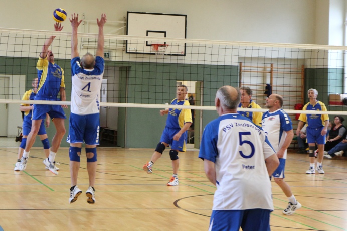 Das letzte Spiel des Tages fand zwischen Zeulenroda und Sonneberg statt. Den großen Altersunterschied beider Mannschaften merkte man nun deutlich. Der älteste Zeulenrodaer Spieler auf dem Feld war immerhin 80 Jahre alt. Trotz dieser Tatsache verkauften sich der PSV sehr teuer. Die Sonneberger waren schneller und beweglicher und wussten das gut zu nutzen. Mit 25:17 und 25:11 gewann der 1.Sonneberger VC 04 das Spiel und sicherte sich die Vizemeisterschaft.